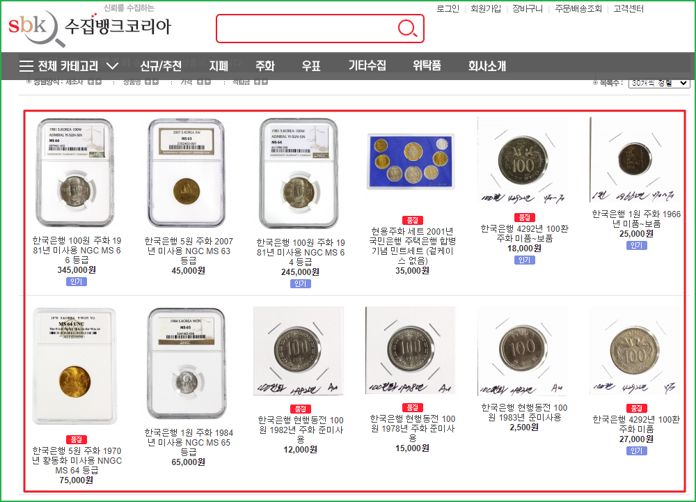 특징: 동전뿐만 아니라 다양한 수집품을 경매로 거래할 수 있습니다. 경매 낙찰 현황을 통해 시세를 파악할 수 있습니다.