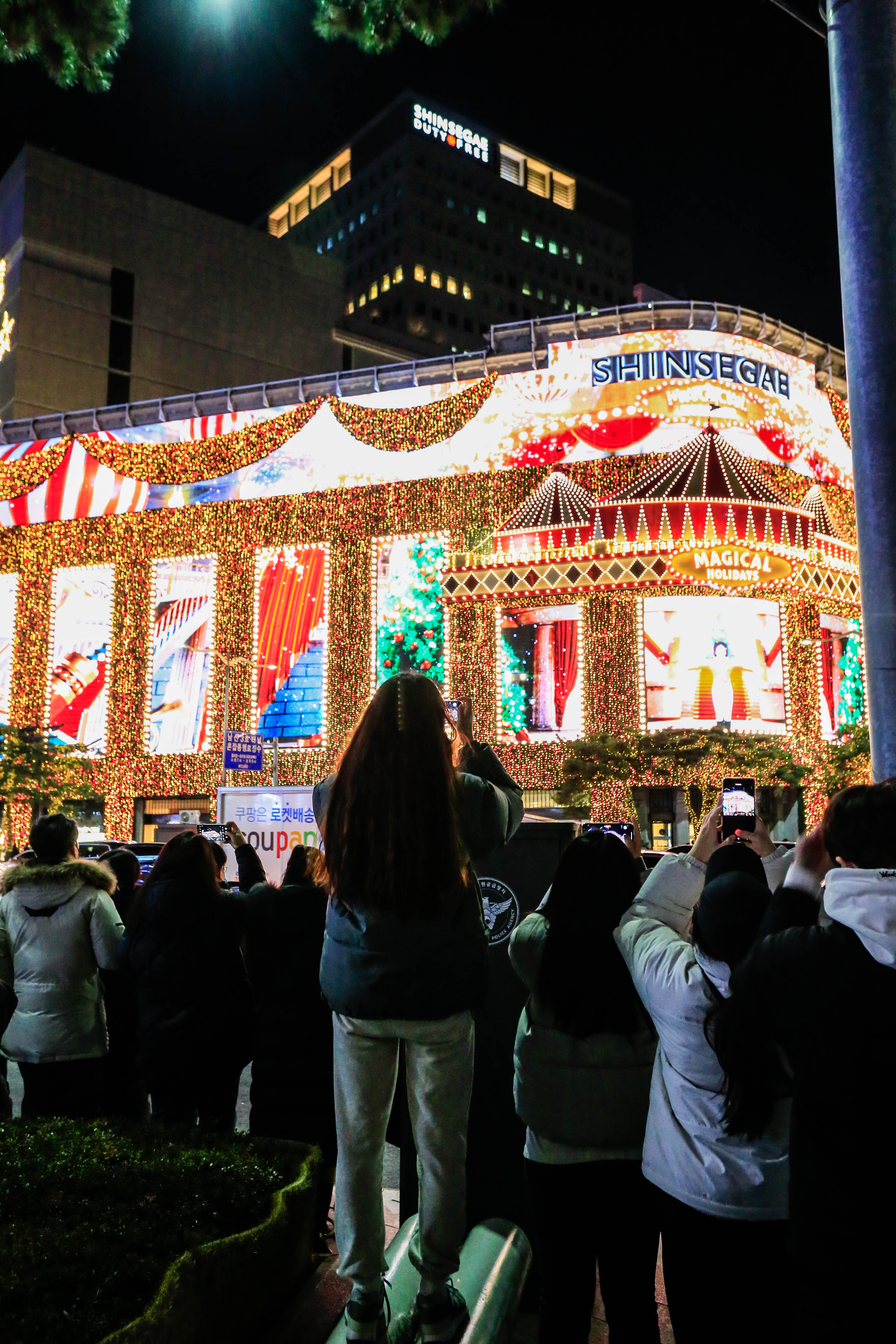 크리스마스 분위기를 한껏 느끼고 싶어 찾아온 사람들은 한발자욱이라도 더 가까이 가고 싶어서 자리경쟁을 하며 쉴새없이 셔터를 누릅니다. 복잡하고 정신없기도 하지만 요즘 이렇게 북적대고 화려하고 시끌법적함이 있었나 하는 생각에 괜시리 신나서 저도 계속 셔터를 눌러대게 되는데요.